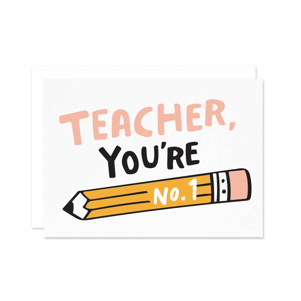 Ahhh, smell the Dixon Ticonderoga pencils and plastic Spacemaker pencil boxes! Show your teacher your support and appreciation with this No. 1 Teacher card.